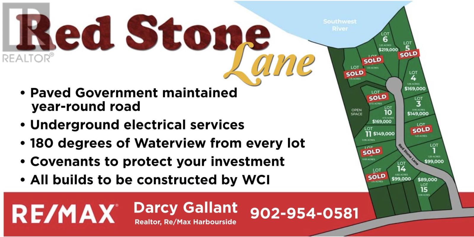 Only two building lots left!! Welcome to the north shore of PEI's newest and finest subdivision overlooking New London Bay. Red Stone Lane is a 16-lot rural development with restrictive covenants to protect the residents' investment. This fully paved, wide road leads to an oversized cul-de-sac with water views from every lot. You will enjoy fantastic water views from 180 degrees of your property. There is a large right of way for all the owners at the west side of the lots between lots 8-9 and an ample 2-acre common green space. Year-round living at its finest with no road maintenance fees or worrying about who you will get to plow the road. Warrens Carpentry must build all homes to ensure the quality standard is uniform. Lots available are 21-10, which is $169,900, and 21-15, which is 89,900. The purchase price is plus HST. (id:4069)